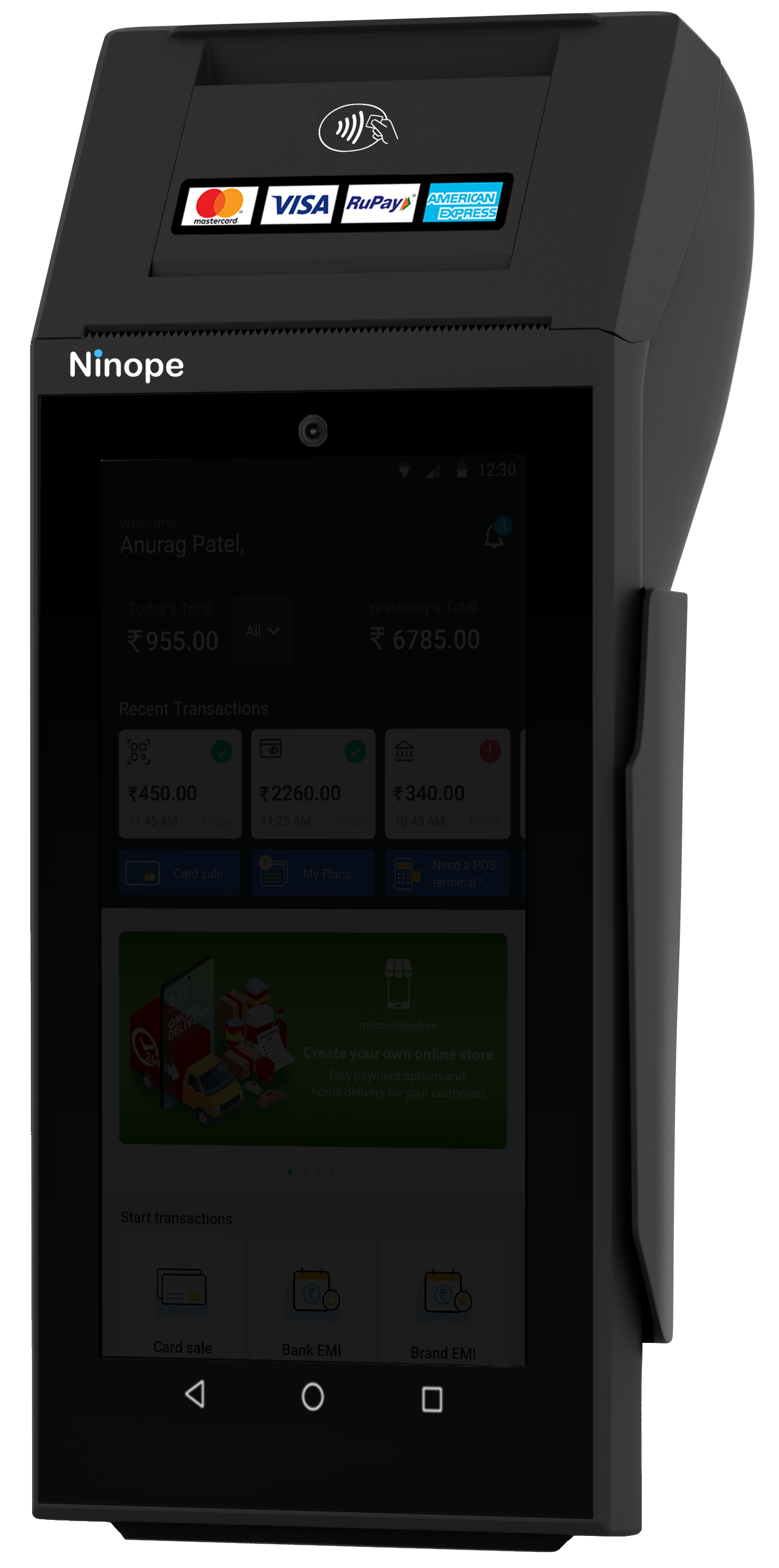 The Wisepad is Ninope’s first POS terminal and is trusted by Merchants across 900+ cities in India. This classic terminal has an EMV reader and connects with a smartphone via Bluetooth to perform card transactions.